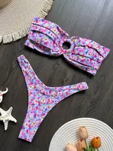 Ribbed Wrinkled Bandeau Bikini Female Swimsuit Women Brazilian Swimwear Two-pieces Bikini Set High Cut Bather Bathing Suit Swim