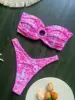 Ribbed Wrinkled Bandeau Bikini Female Swimsuit Women Brazilian Swimwear Two-pieces Bikini Set High Cut Bather Bathing Suit Swim