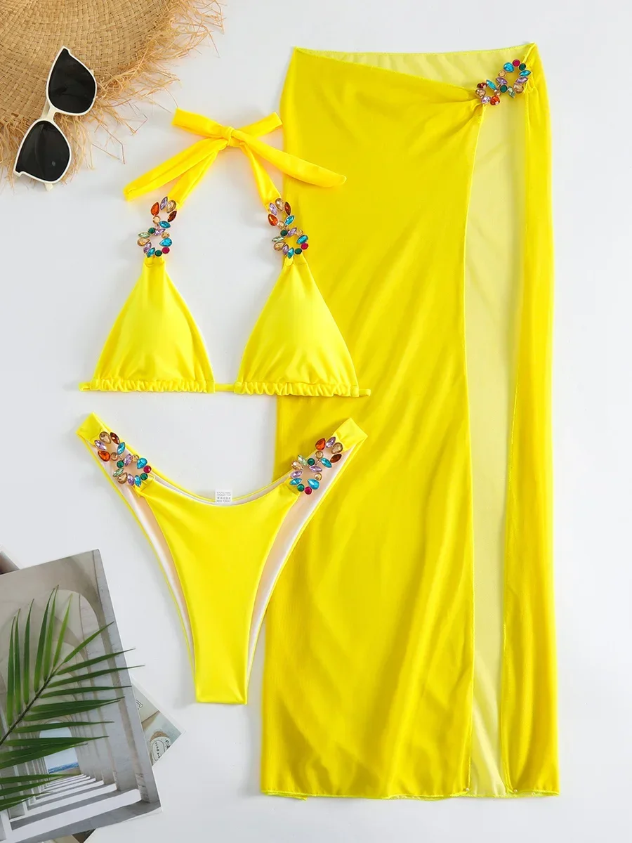 Ring Link Bandeau Cover Up With Thong Bikini 2025 Women Solid Black Swimwear Swimsuit Beachwear Bathing Swimming Swim Suit