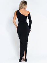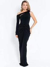 Rose One Shoulder Backless Maxi Dress For Women Hollow Out Single Sleeve Ruched Bodycon Club Party Long Dress