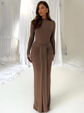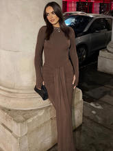 Ruched Draped Maxi Dress For Women O Neck Long Sleeve Bodycon Club Party Long Dress Female Elegant Dresses