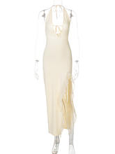 Ruffle V-neck Backless Sleeveless Lace-up Thigh Split Patchwork Maxi Dress For Women Slim Party Evening Dress
