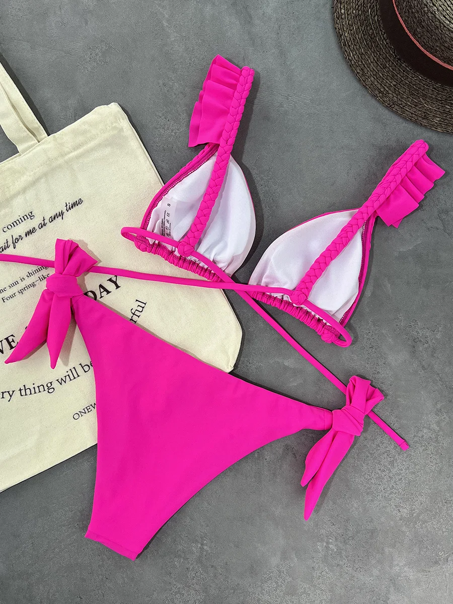 Ruffled Frilled Bikini Female Swimsuit Women Swimwear Two-pieces Bikini set High Cut Bather Bathing Suit Swim Summer Beachwear