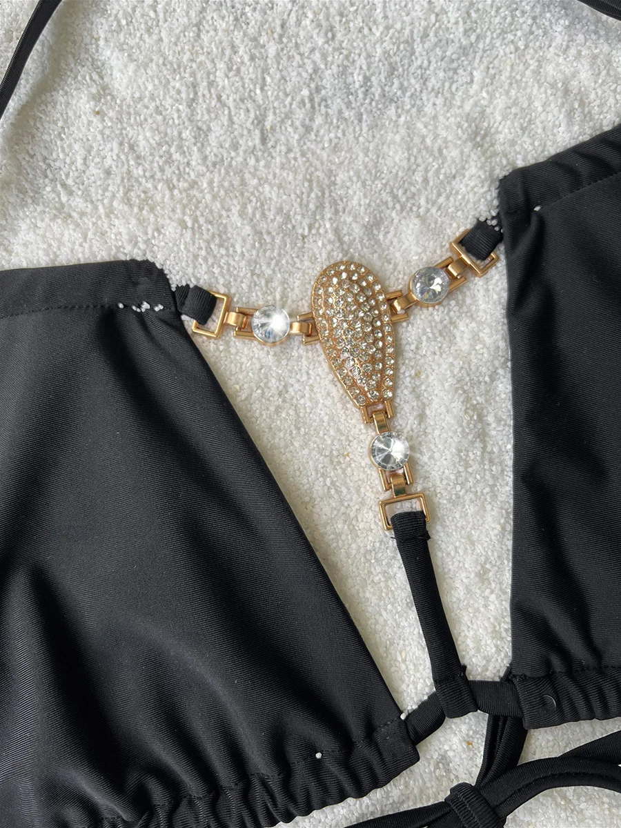 S- XL Diamond Rhinestones Halter Hollow Out Bikini Female Swimsuit Women Swimwear Two-pieces Bikini Set Bather Bathing Suit Swim