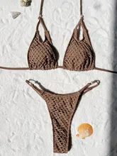 S – XL Fishnet Halter Mini Thong Bikini Female Swimsuit Women Swimwear Two-pieces Bikini Set High Cut Bather Bathing Suit Swim