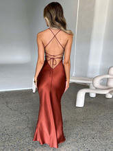 Satin Backless Maxi Dress For Women 2025 Autumn Spaghetti Strap Sleeveless Bodycon Long Dress Vestido Clubwear