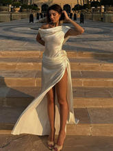 Satin Backless Maxi Dress For Women Elegant Rose Thigh High Split Beach Holiday Long Dress Gorgeous Club Gown