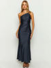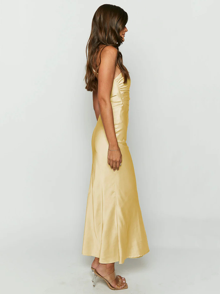 Satin Diagonal Collar Backless Maxi Dress For Women Robe Summer Sleeveless Bodycon Club Party Long Dress