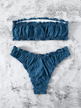 Schiffy Lettuce Trim Bandeau Bikini 2025 Women Brazilian Swimwear Female Swimsuit Beachwear Bathers Bathing Swimming Suit