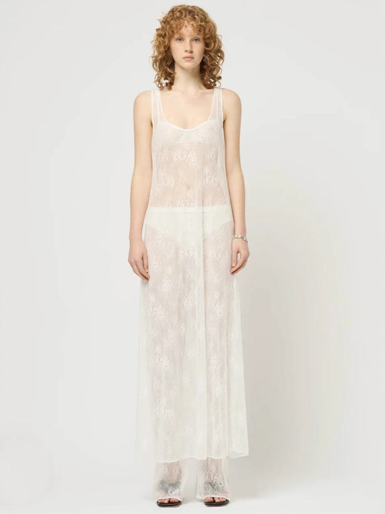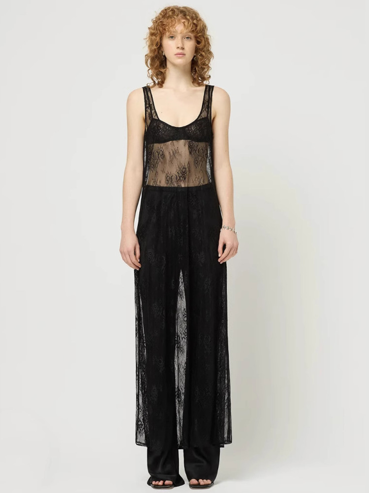 See Through Lace Hollow Out Maxi Dress For Women U Neck Sleeveless Backless Transparent Beach Long Dress