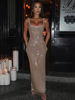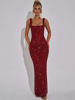 Sequins Backless Maxi Dress For Women Gown Sparkle Square Collar Sleeveless Bodycon Club Long Dress
