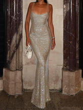 Sequins Sleeveless Maxi Dress For Women Sparkle Backless High Waist Bodycon Club Party Shiny Long Dress