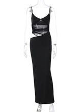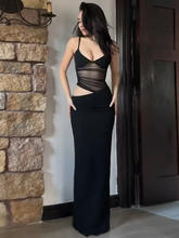 Sheer Mesh Backless Maxi Dress For Women Black Hollow Out Spaghetti Strap Sleeveless Bodycon Club Long Dress