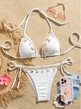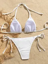 Shell Decoration Ribbed Bikini Women Swimwear Female Swimsuit Two-pieces Bikini Set Halter Strappy Bather Bathing Suit Swim Lady
