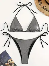 Shiny Bronzing Halter Bikini Female Swimsuit Women Swimwear Two-pieces Bikini Set High Cut Bather Bathing Suit Swim Beach Wear