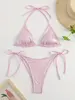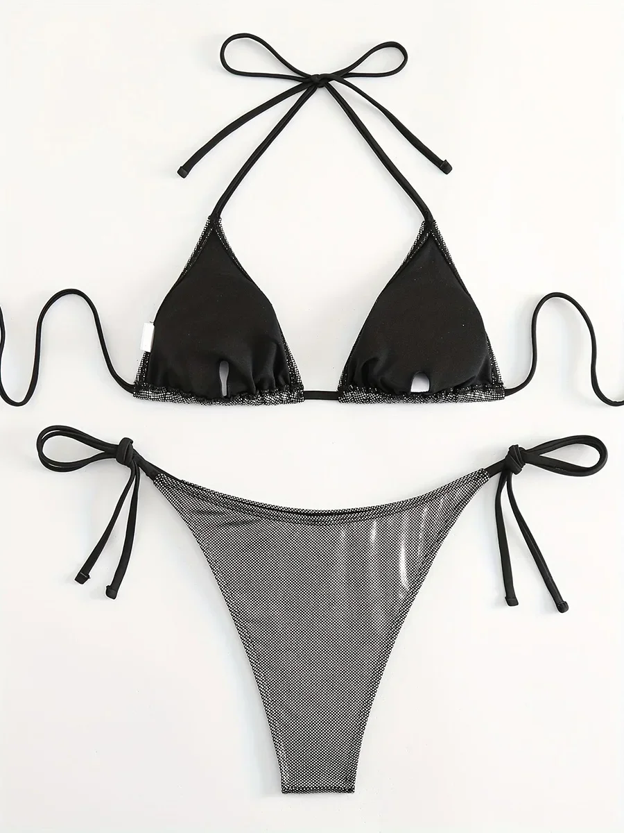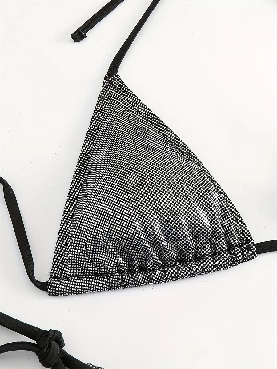 Shiny Bronzing Halter Bikini Female Swimsuit Women Swimwear Two-pieces Bikini Set High Cut Bather Bathing Suit Swim Beach Wear