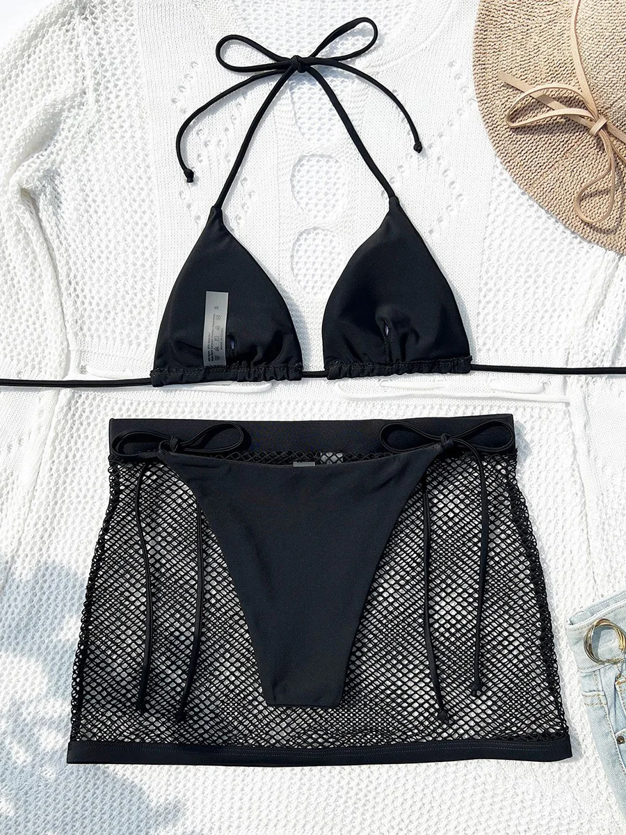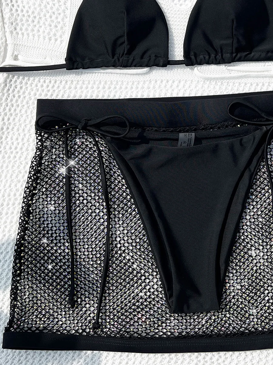 Shiny Diamond Fishnet Skirt Micro Bikini Female Swimsuit Women Swimwear Three-pieces Bikini Set Bathing Suit Swim Beach Wear