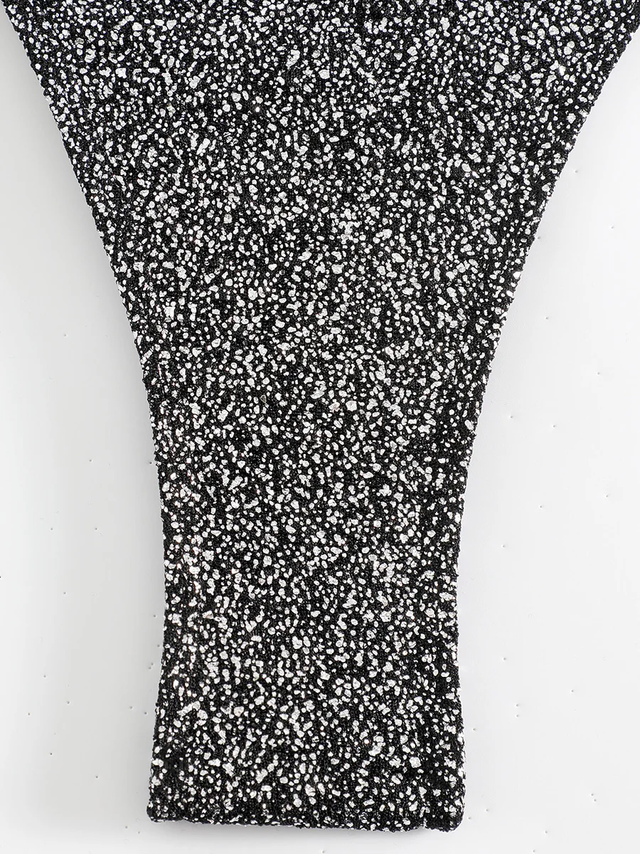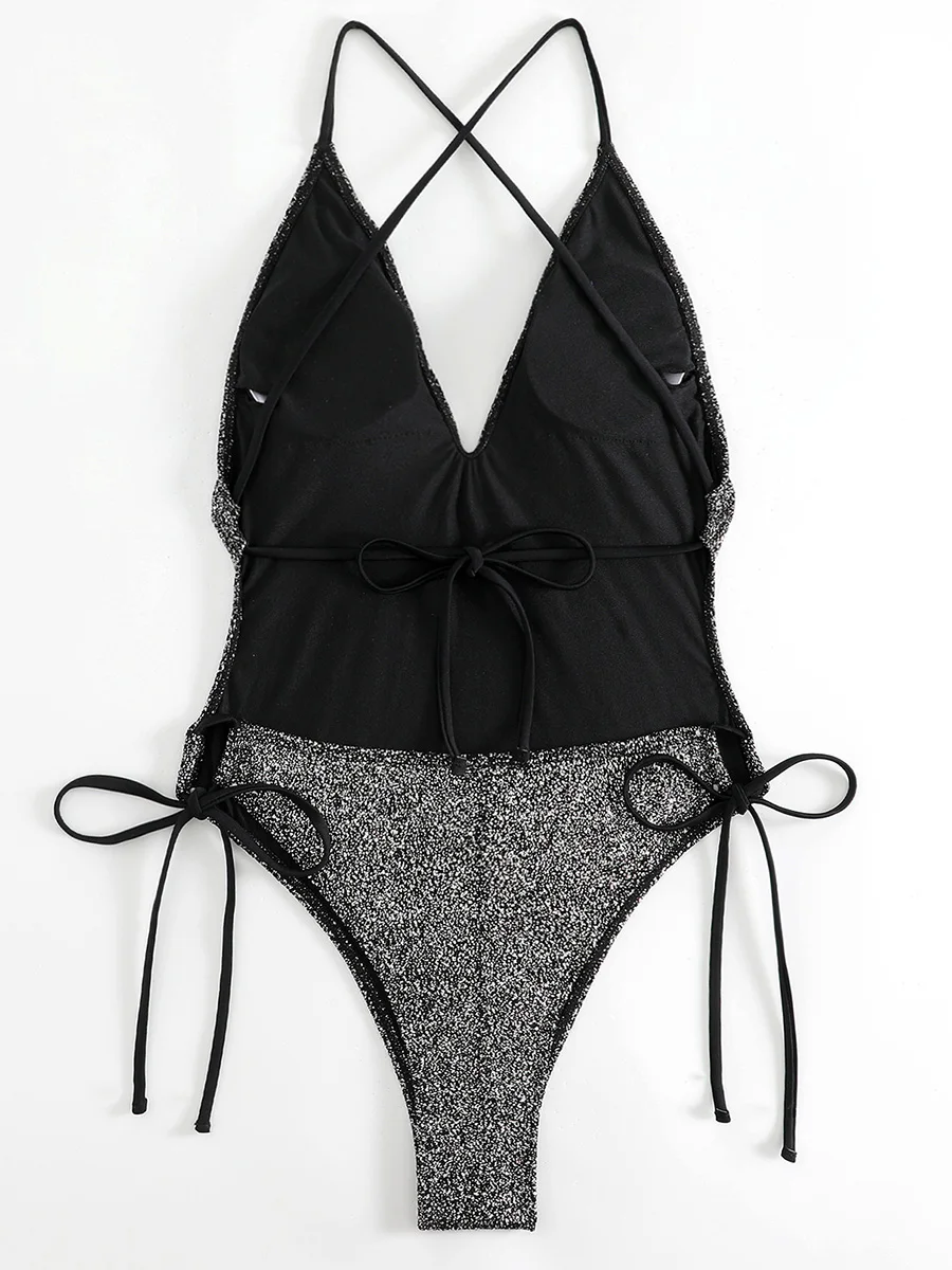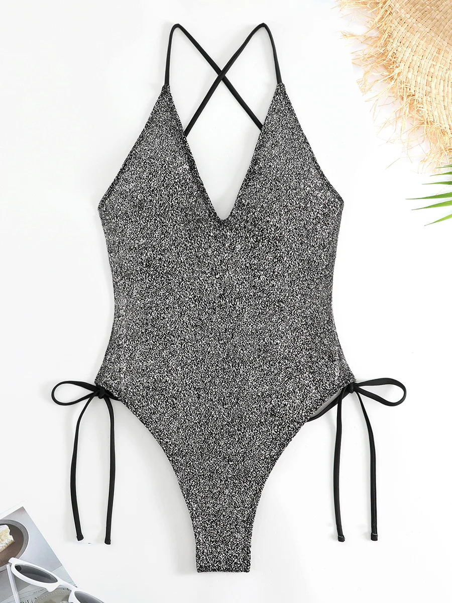 Shiny Glitter Sparkling V Neck Women Swimwear One Piece Swimsuit Female Cross Backless Monokini Bather Bathing Suit Swim