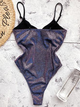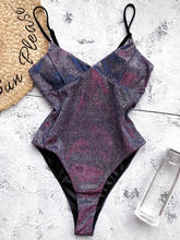 Shiny Glitter Sparkling Women Swimwear One Piece Swimsuit Female Bather High Leg Cut Monokin V Neck Bathing Suit Swim Bodysuit