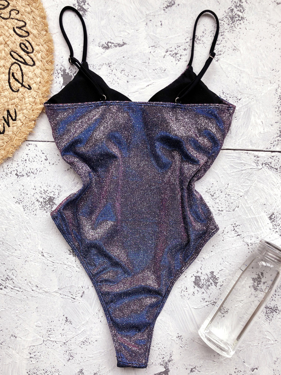 Shiny Glitter Sparkling Women Swimwear One Piece Swimsuit Female Bather High Leg Cut Monokin V Neck Bathing Suit Swim Bodysuit