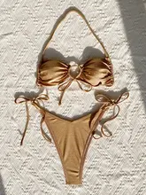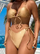 Shiny Golden Knotted High Cut Bikini Women Swimwear Female Swimsuit Two-pieces Bikini Set Halter Bather Bathing Suit Swim Lady