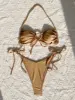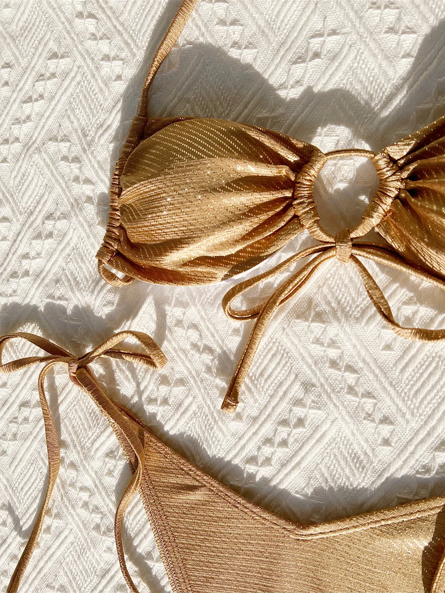 Shiny Golden Knotted High Cut Bikini Women Swimwear Female Swimsuit Two-pieces Bikini Set Halter Bather Bathing Suit Swim Lady