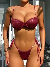 Shiny PU Leather Underwired Bra Cup Bikini Women Swimwear Female Swimsuit Two-pieces Bikini Set Push Up Bathing Suit Swim Lady