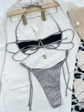 Shiny Sequins Underwired Hollow Out Bikini Women Swimwear Female Swimsuit Two-piece Bikini Set Halter Bather Bathing Suit Swim