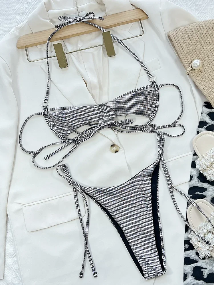 Shiny Sequins Underwired Hollow Out Bikini Women Swimwear Female Swimsuit Two-piece Bikini Set Halter Bather Bathing Suit Swim