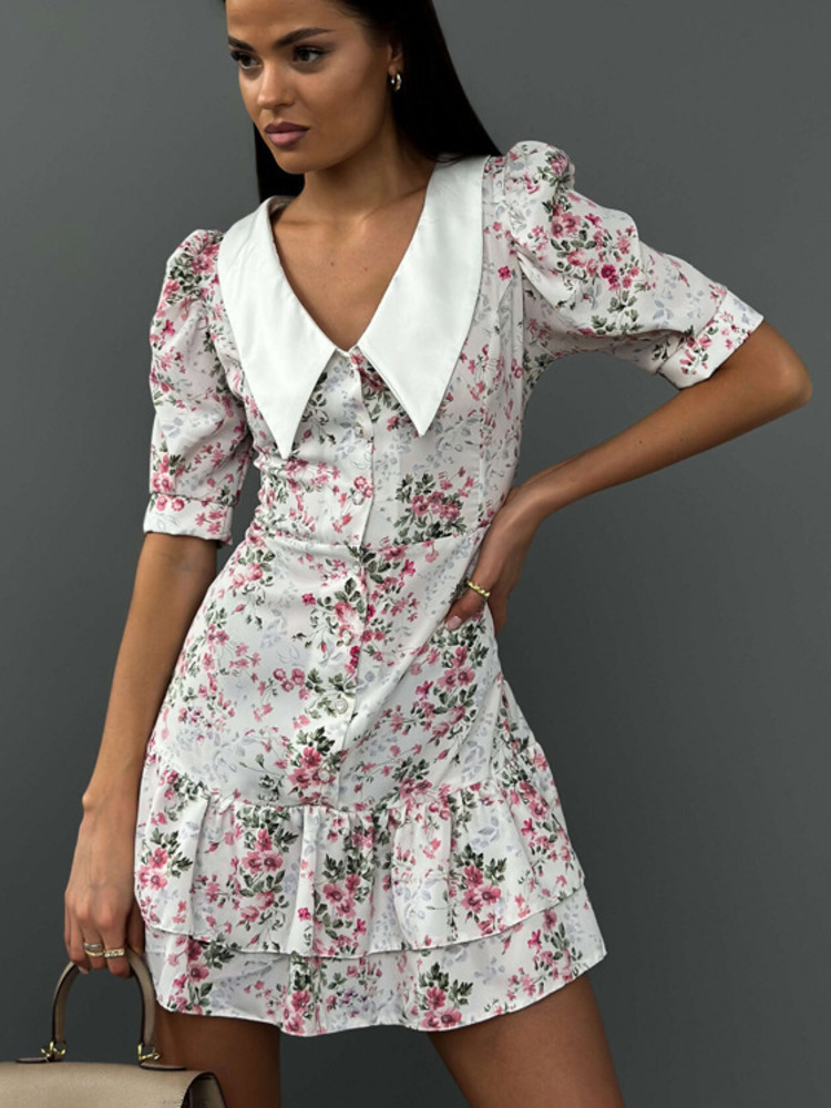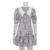 Short Sleeve Floral Mini Dress For Women Robe Turn-down Collar Elegant French Dress Ladies High Waist Dresses