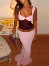 Skirt Two Piece Sets Women Halter Lace-up Cropped Tops And Maxi Skirt Ladies Sleeveless 2 Piece Sets