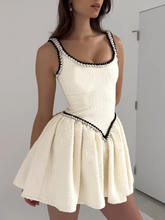Sleeveless A-line Mini Dress For Women White Spaghetti Strap Sleeveless Backless Pleated Club Party Dress Clubwear