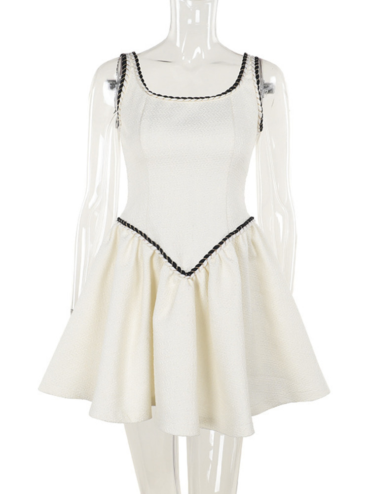 Sleeveless A-line Mini Dress For Women White Spaghetti Strap Sleeveless Backless Pleated Club Party Dress Clubwear