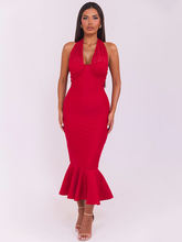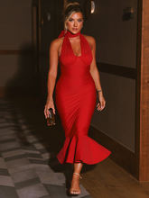 Sleeveless Fishtail Maxi Dress For Women Autumn Halter Deep V Neck Backless Bodycon Party Long Dress Elegant