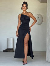 Sleeveless High Split Maxi Dress For Women Single Shoulder Strap Off-shoulder Backless Bodycon Long Dress