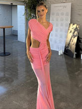 Sleeveless Hollow Out Pleated Patchwork Maxi Dress For Women High Waist Off-shoulder Slim Club Party Long Dress