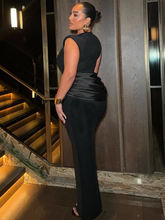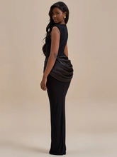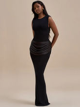 Sleeveless Ruched Maxi Dress For Women Gown Black O Neck High Waist Bodycon Club Party Long Dress Vestido
