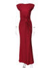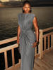 Sleeveless Ruched Maxi Dress For Women Gown Solid O Neck High Waist Bodycon Club Long Dress Vestido