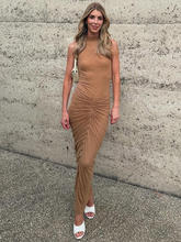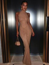 Sleeveless Ruched Maxi Dress For Women Gown Two Layer Mesh Bodycon Club Long Dress Vestido Elegant