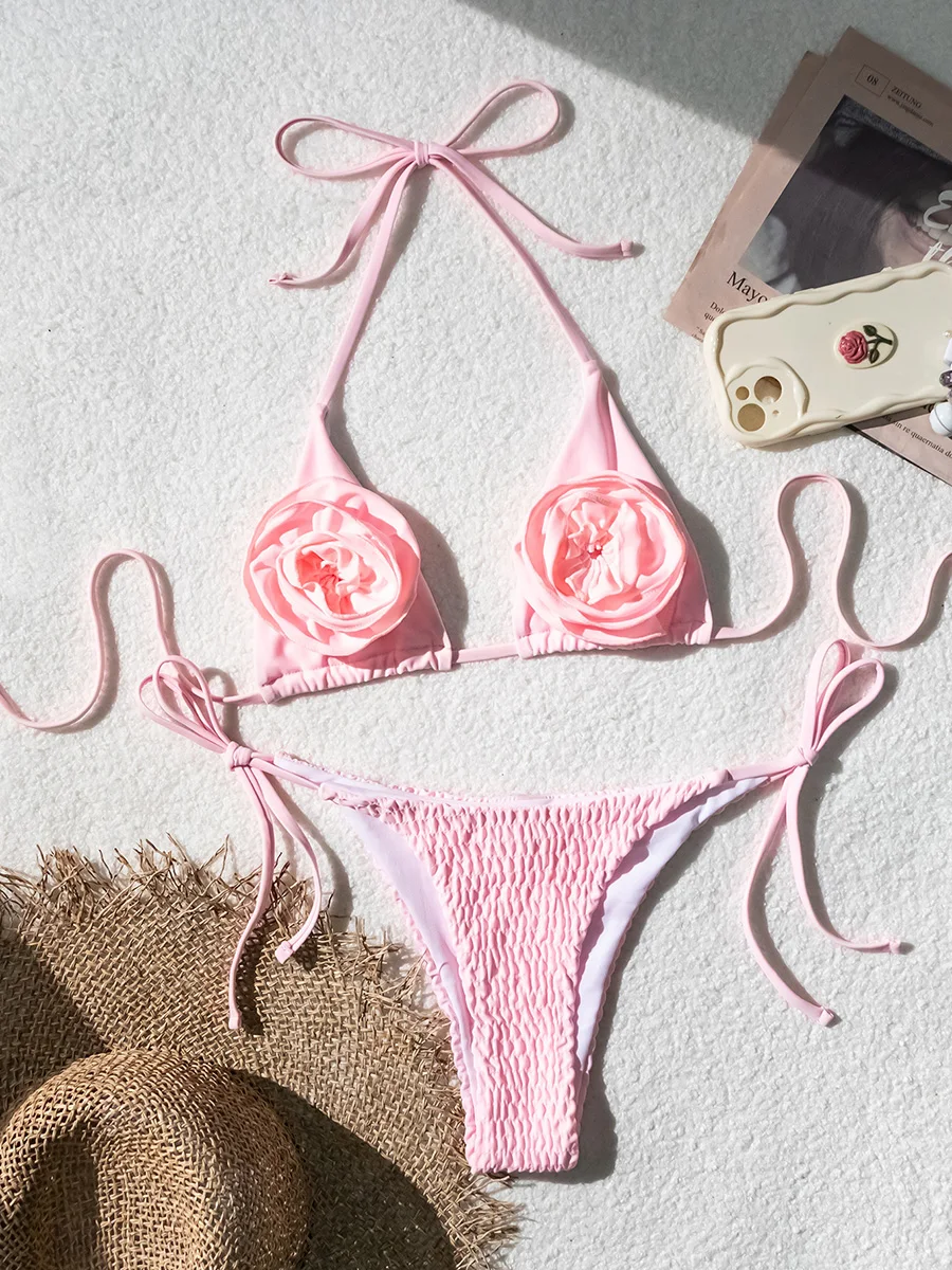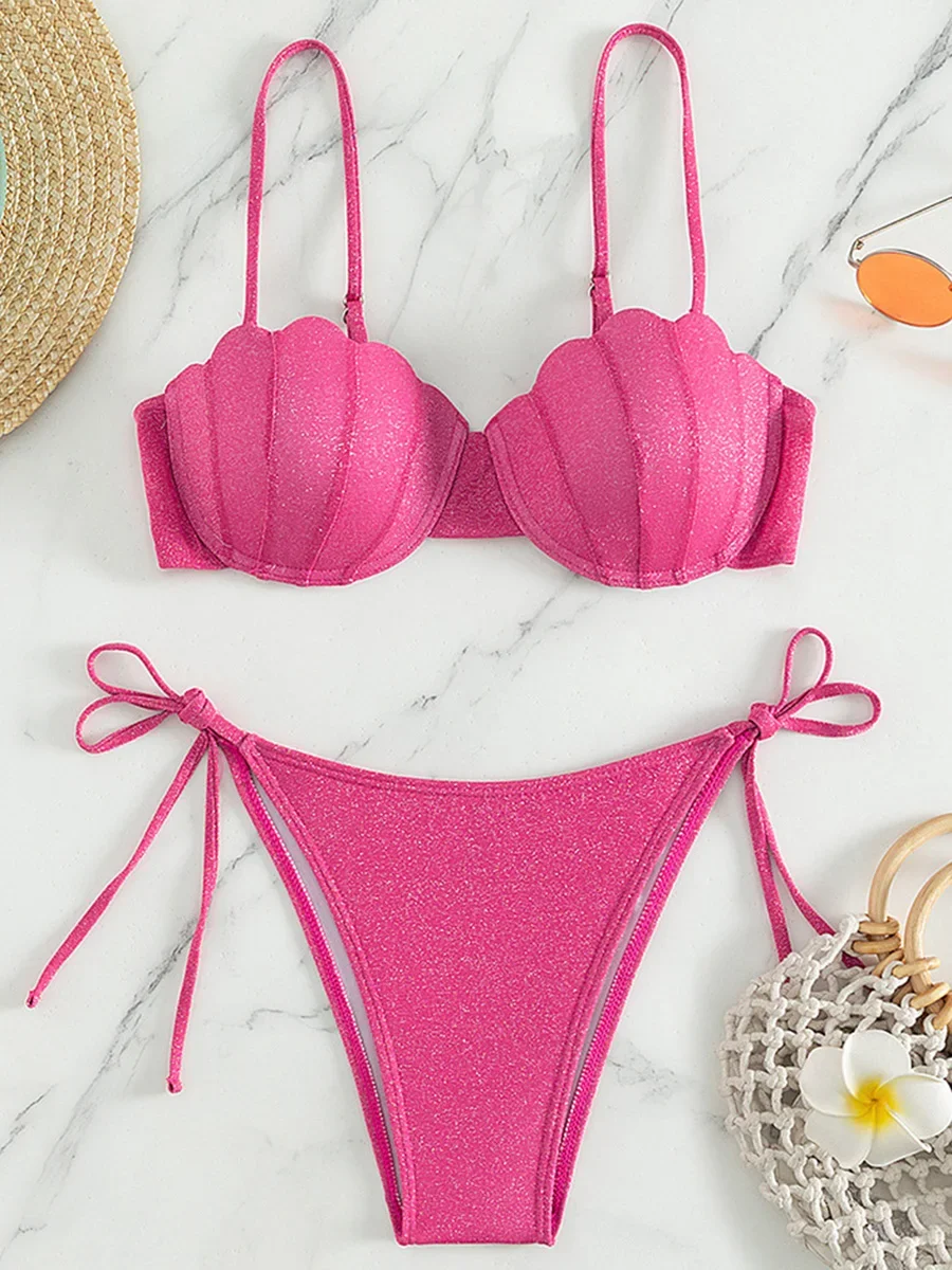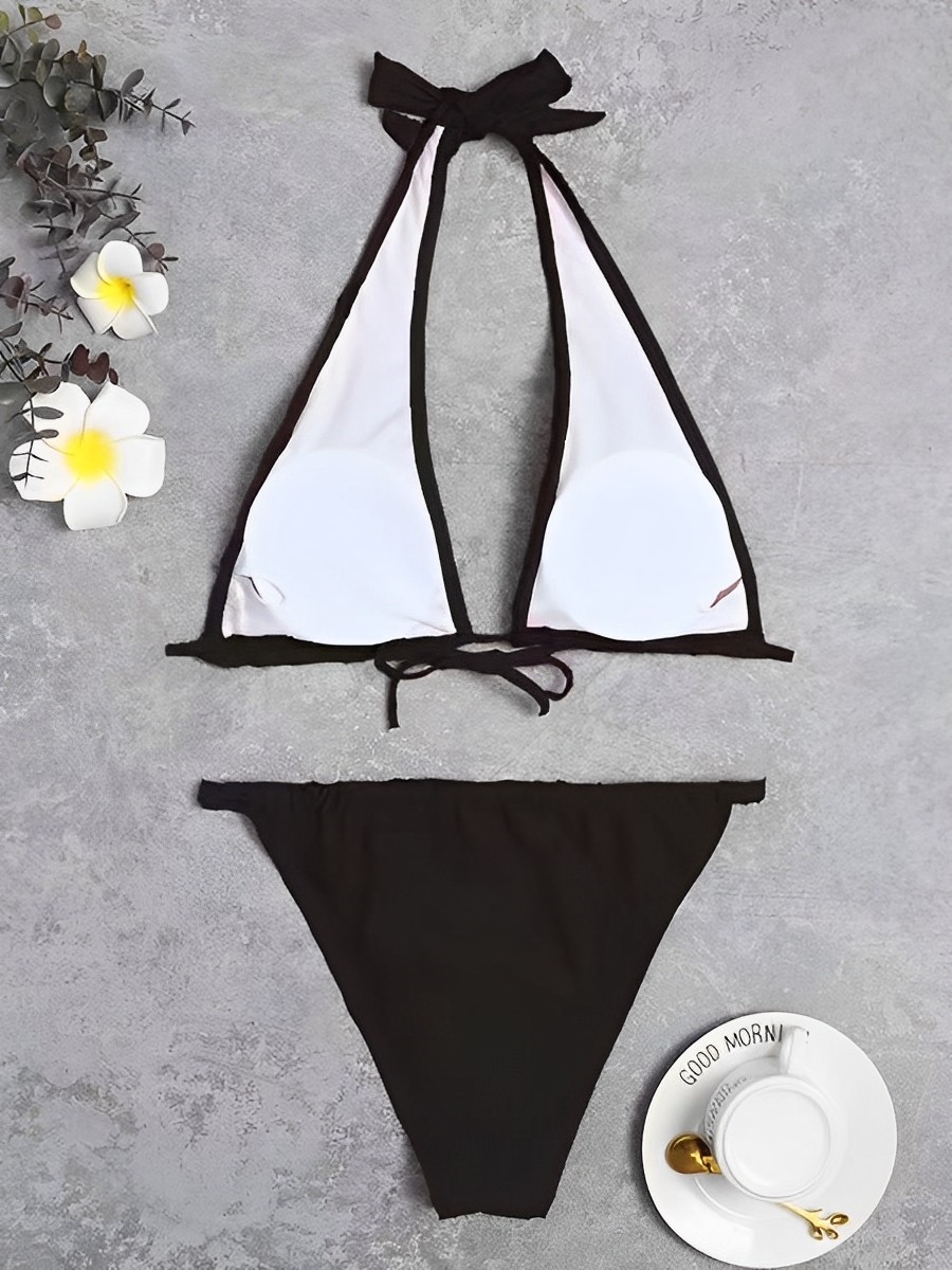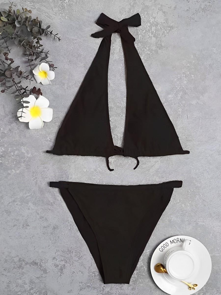 Solid Cross V Neck Bikini 2025 Women Hollow Out Halter Swimsuit Swimwear Female Bathers Bathing Swimming Swim Suit Beachwear