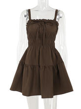 Spaghetti Strap Backless Mini Dress For Women Solid Square Collar Sleeveless A-line Club Party Dress New