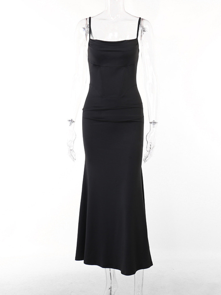 Spaghetti Strap Fishtail Dress For Women Robe Summer Sleeveless Backless Bodycon Maxi Dresses Ladies Vestido
