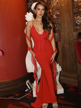 Spaghetti Strap Lace Streamer Maxi Dress For Women V Neck Sleeveless Backless Bodycon Club Party Long Dress