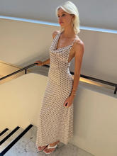 Spaghetti Strap Polka Dot Dress For Women Gown Irregular V Neck Sleeveless Backless Bodycon Club Long Dress
