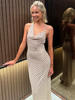 Spaghetti Strap Polka Dot Dress For Women Gown Irregular V Neck Sleeveless Backless Bodycon Club Long Dress