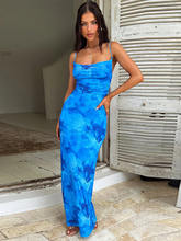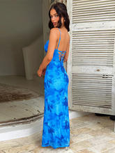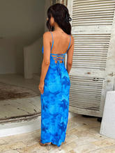 Spaghetti Strap Print Maxi Dress For Women Gown Summer Sleeveless Backless Bodycon Club Party Long Dress Fashion