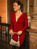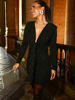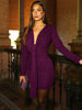 Sparkle Long Sleeve Mini Dress For Women Deep V Neck Sequins Draped Ruched Bodycon Club Dress Elegant