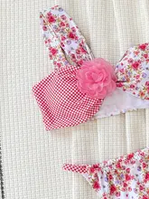 Splicing 3D Flowers Plaid Bikinis One Shoulder Bikini Women Swimwear Female Swimsuit Two-pieces Bikini Set Thong Bathing Suit