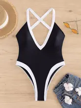 Splicing Criss Cross Backless High Leg Cut Women Swimwear One Piece Swimsuit Female Monokini Bather Bathing Suit Swim Beachwear