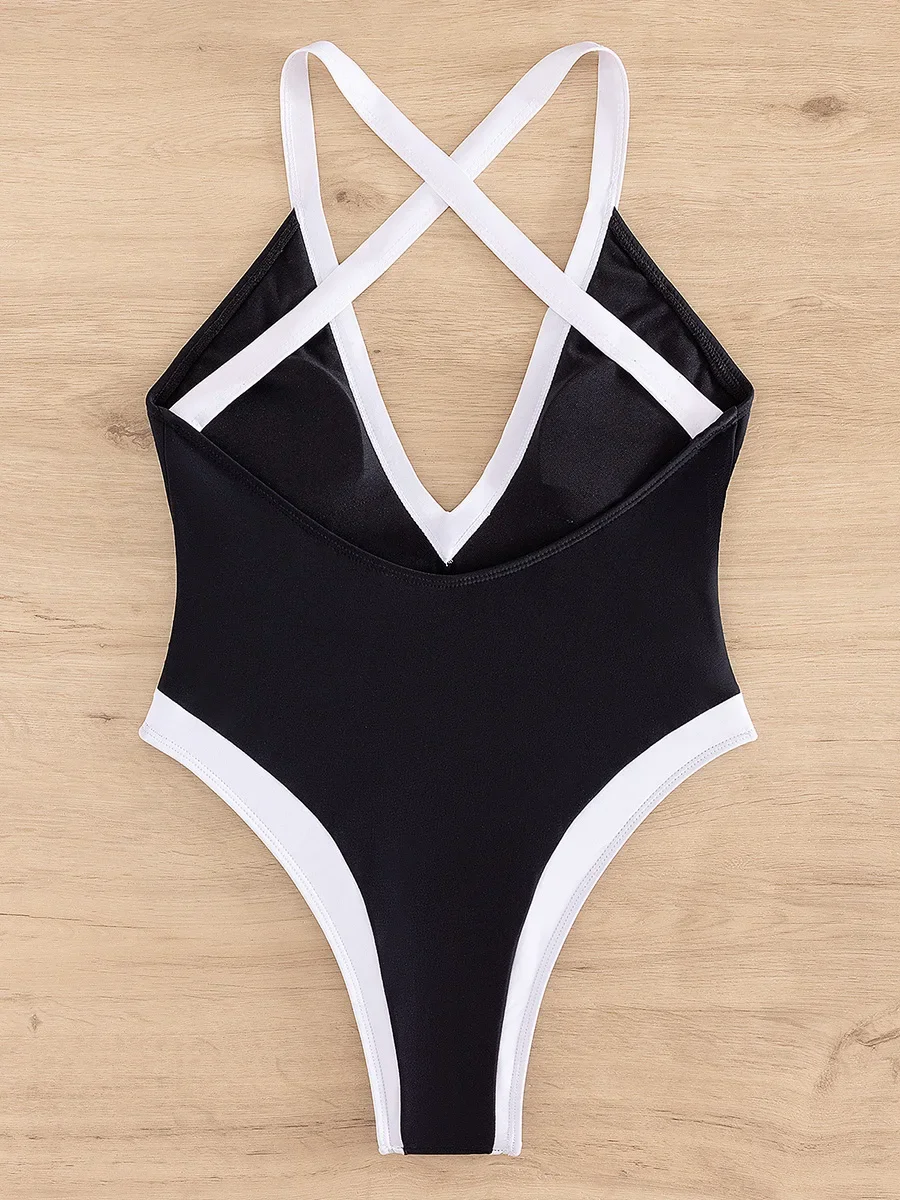 Splicing Criss Cross Backless High Leg Cut Women Swimwear One Piece Swimsuit Female Monokini Bather Bathing Suit Swim Beachwear